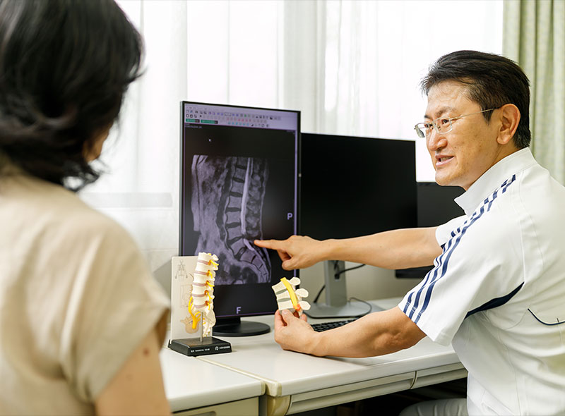 捻挫や骨折といったケガだけでなく、肩こり、手足のしびれといった不快な症状や腰痛、膝関節痛、五十肩などといった慢性のつらい痛みまで、最新の知識と検査機器を用いて適切な治療法を提案いたします。また、高齢者の健康寿命に大きく関与する骨粗鬆症治療も当院の得意分野です。